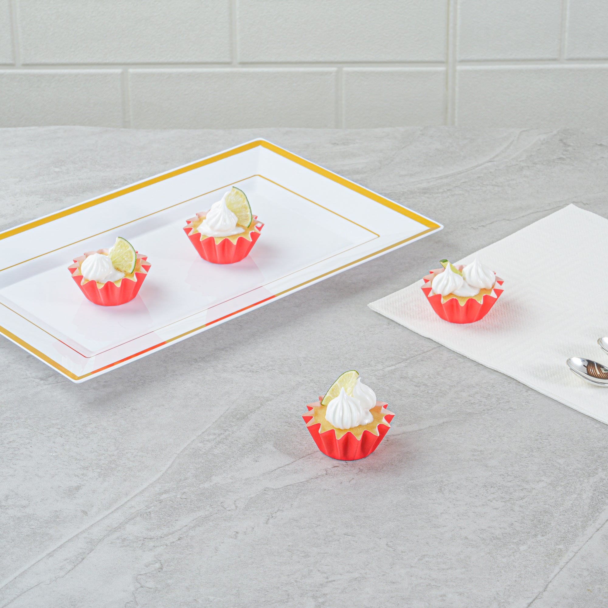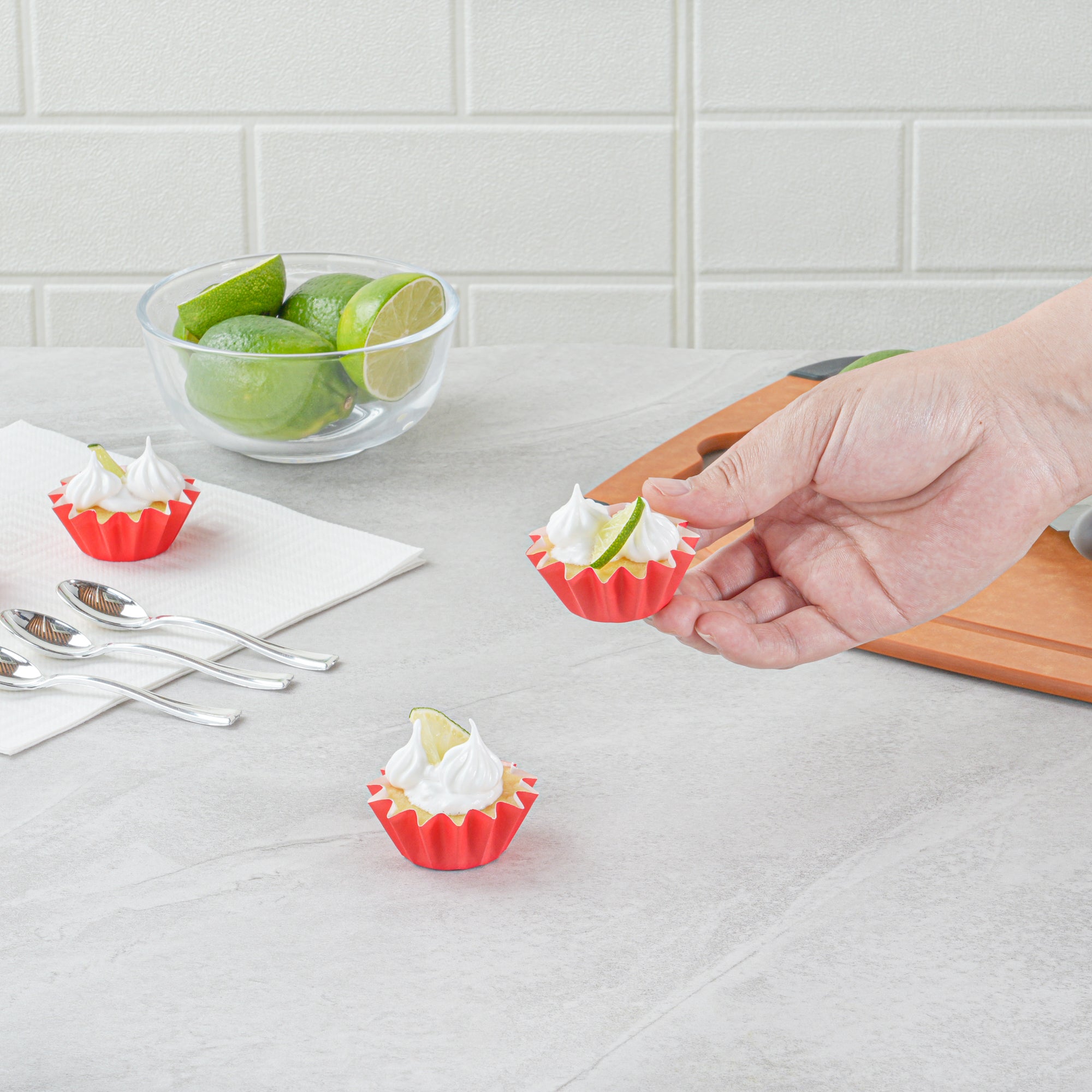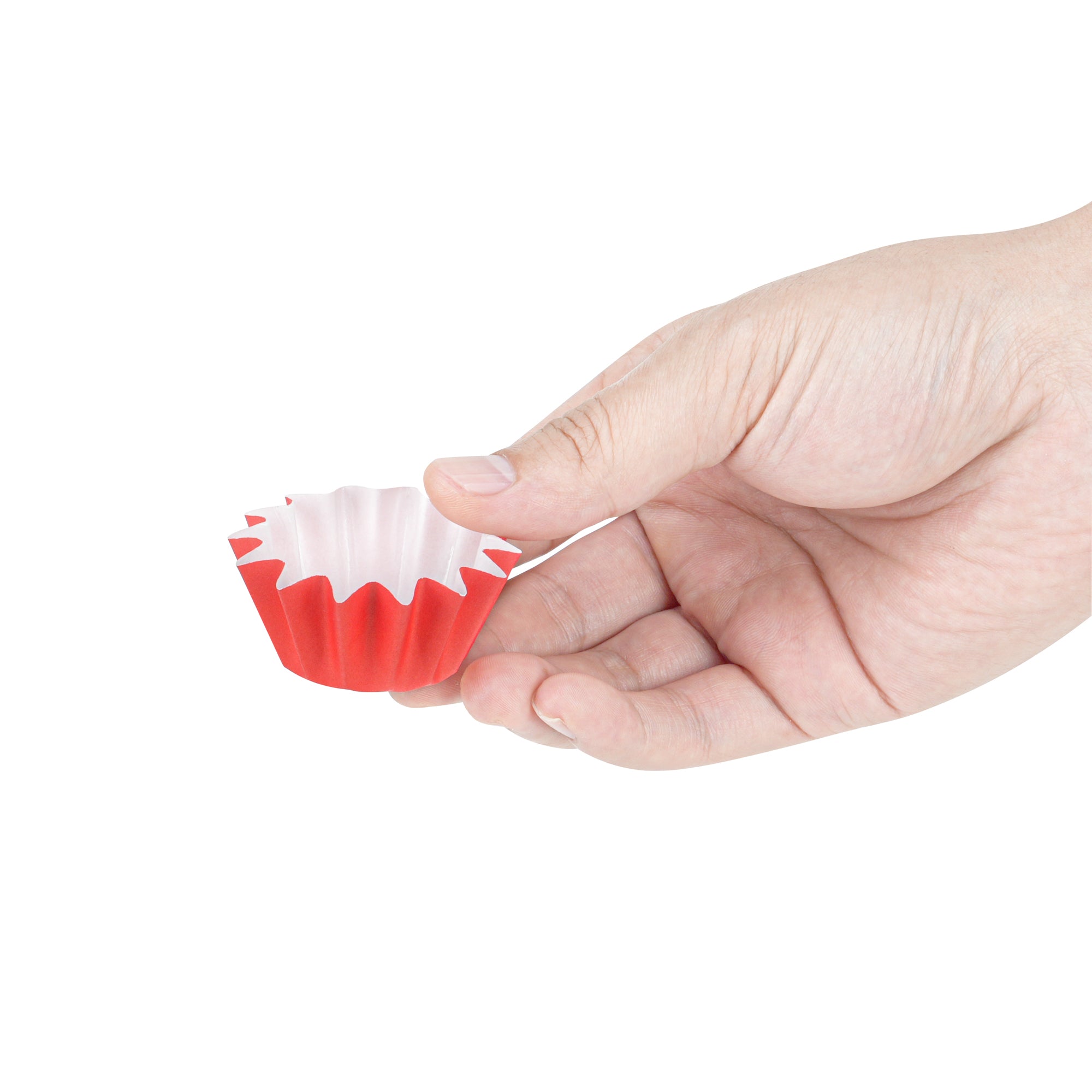 Ensure flawless presentation with grease-resistant mini muffin liners. The Panificio Grease-Resistant Mini Muffin Liners boast a specialized coating that prevents treats from sticking, ensuring an effortless release every time. Designed for professional kitchens, these cupcake wrappers feature heavyweight paper that can withstand oven temperatures up to 425 degrees Fahrenheit, making them perfect for consistent baking results. With their eye-catching flared design, these oven-safe baking cups accentuate cakes, cookies, and pastries, adding a touch of elegance to your culinary creations. Measuring 2 inches in diameter, these red paper liners are not only visually appealing but also disposable, offering a convenient solution for high-volume bakeries and cafes. Enhance your bakery's efficiency by choosing disposable mini muffin liners that combine style and function. Sold in a 200 count box.