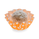0.4 OZ ROUND POLKA-DOTTED HOT ORANGE PAPER MINI BAKING CUP - FLARED