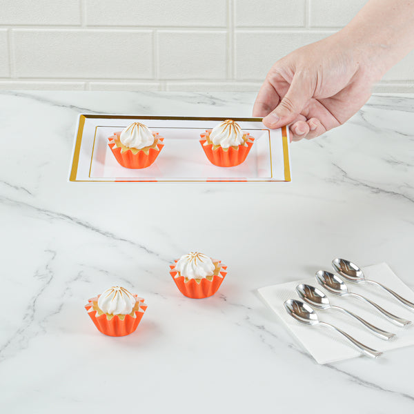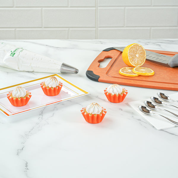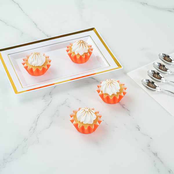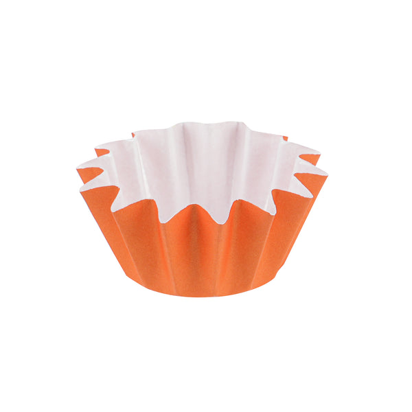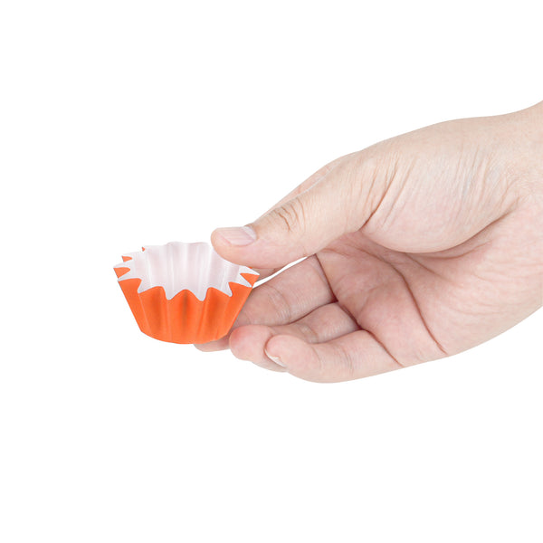 Ensure delightful presentation and hassle-free baking with these innovative liners. Panificio Grease-Resistant Mini Cupcake Liners feature a specialized grease-resistant coating that guarantees effortless release of your treats, making them perfect for busy bakeries needing mini cupcake liners. Crafted from heavyweight paper, these liners are engineered to withstand oven temperatures up to 425 degrees Fahrenheit, ensuring your creations remain intact under intense heat, ideal for chefs using paper baking cups. Their unique flared design beautifully accentuates your baked goods, enhancing the visual appeal of your creations and serving as eye-catching grease-resistant cupcake liners. Available in a vibrant tangerine color, these 2-inch by 2-inch liners make a striking statement, while their 0.6-inch height ensures they hold up to 0.4 ounces of batter efficiently. Elevate your baking presentation and maintain operational efficiency with these reliable liners. Sold in a 200 count box.