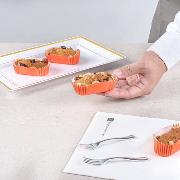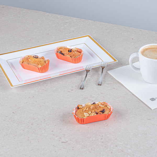 Streamline your baking process with exceptional ease. The Panificio Grease-Resistant Mini Cupcake Liners feature a specialized grease-resistant coating that ensures your delicious treats effortlessly release from the liners. These disposable baking cups are crafted from heavyweight paper, making them oven-safe up to 425 degrees Fahrenheit, ensuring consistent and reliable baking results without compromising the structure of your confections. The ridged design of these baking cups beautifully accentuates your baked goods, enhancing their presentation and tempting customers with an irresistible display. With their vibrant tangerine color, these liners add a pop of visual appeal to any bakery case or dessert platter. Make your baking operation more efficient and visually stunning, all while enjoying the convenience of disposable liners. Each order includes 200 Panificio Grease-Resistant Mini Cupcake Liners.