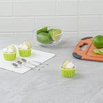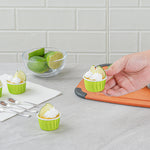 Ensure flawless presentations with grease-resistant round baking cups. The Panificio Grease-Resistant Round Baking Cups feature a grease-resistant coating that prevents treats from sticking, ensuring easy release and maintaining the pristine appearance of your baked creations. Constructed from heavyweight paper, these paper baking cups withstand oven temperatures up to 425 degrees Fahrenheit, making them ideal for baking and serving mini treats. The pleated design not only adds elegance but also supports cupcakes and muffins, enhancing their visual appeal at bakeries or catering events. With a vibrant green color, these mini muffin liners provide a fresh and appealing look, perfect for a variety of themes and occasions. Measuring 2 inches in diameter and 1.2 inches in height, these eco-friendly baking cups are crafted from recyclable materials, supporting sustainability initiatives in your establishment. Each order includes 200 Panificio Grease-Resistant Round Baking Cups.