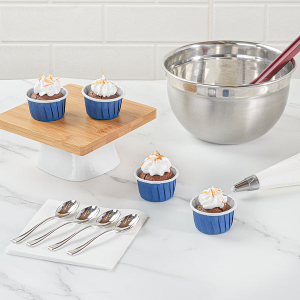 - Pleated design accentuates cookies, cupcakes, and pastries