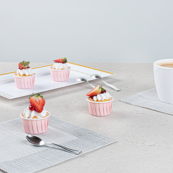 Enhance presentation and convenience with grease-resistant baking cups. Panificio Grease-Resistant Pink Paper Baking Cup features a high-performance grease-resistant coating that ensures easy release of baked goods, making your cleanup faster and more efficient. Perfect for any bakery or café, these paper baking cups are crafted from heavyweight paper that withstands oven temperatures up to 425 degrees Fahrenheit, ensuring that your creations retain their shape and texture even under high heat. The pleated design accentuates cupcakes and muffins beautifully, elevating the visual appeal of your treats in any display. With dimensions of 2 inches in length, 2 inches in width, and 1.18 inches in height, these mini muffin liners provide an ideal fit for your standard-sized baking trays, offering consistent results with every batch. Make a statement with their charming pink color, perfect for themed events or everyday use. Elevate your baking presentation with these cupcake liners and enjoy hassle-free baking. Each order includes 200 Panificio Grease-Resistant Pink Paper Baking Cup.