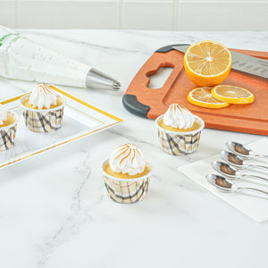 Enhance your baking presentation with style and functionality. The Panificio Plaid Cupcake Liner features a grease-resistant coating, ensuring that your baked treats release effortlessly and maintain their perfect shape, making it an ideal cupcake liner for any event. Crafted from heavyweight paper, these liners can withstand oven temperatures up to 425 degrees Fahrenheit, providing reliable performance even in high-heat baking conditions, and doubling as a muffin paper for versatile use. The pleated design not only accentuates cakes and pastries but also adds a touch of elegance to your dessert displays, making them the perfect disposable baking cups for professional bakeries and home bakers alike. With a compact size of 2 inches in length, 2 inches in width, and 1.18 inches in height, these liners are freezer-safe and disposable, offering convenience and efficiency in your baking operations. Elevate your pastry presentation and ensure easy cleanup with these indispensable baking accessories. Each order includes 200 Panificio Plaid Cupcake Liner.