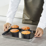 Elevate your bakery’s presentation with elegant baking solutions. Panificio Greaseproof Jumbo Baking Cup showcases scalloped edges that add flair to pastry presentation, making them ideal for bakeries focused on visual appeal. Constructed from greaseproof paper, these jumbo baking cups ensure easy release of treats, maintaining their pristine appearance while simplifying cleanup. With an oven-safe design, these baking cups streamline operations by allowing you to bake directly in them, eliminating the need for additional cookware. Each oven-safe baking cup boasts a 10-ounce capacity to accommodate jumbo muffins or cupcakes, catering to customers’ desires for larger portions. Enhance your bakery offerings with these greaseproof cupcake liners and impress customers with every bake. Each order includes 200 Panificio Greaseproof Jumbo Baking Cups.
