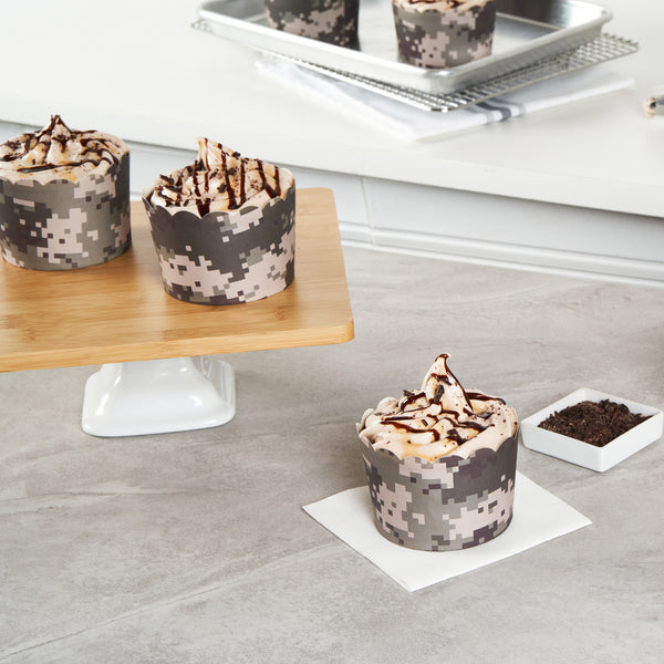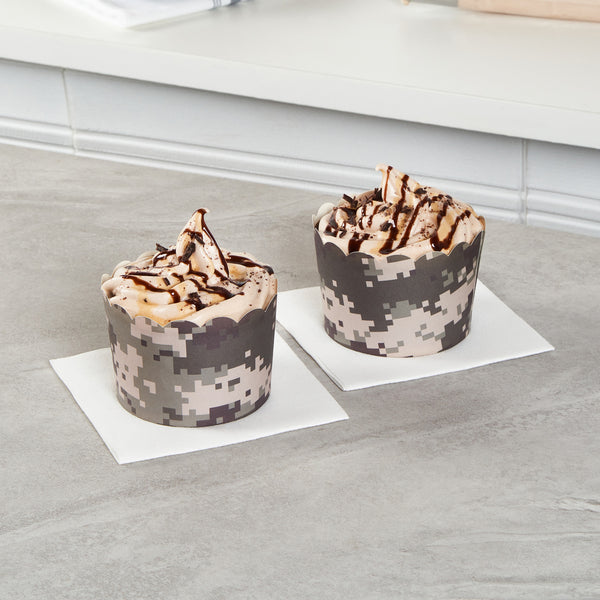 Enhance your bakery's presentation with greaseproof baking solutions. Panificio Greaseproof Paper Baking Cups feature a greaseproof lining that ensures easy release of baked goods, preventing any sticking and facilitating a seamless culinary experience. These large cupcake liners are designed with elegant scalloped edges, adding a sophisticated flair to your pastries and desserts, which is perfect for elevating the visual appeal of any sweet treat. With a capacity of 10 ounces and dimensions of 3.62 inches in diameter, they are ideally suited for a range of delicious offerings. They are oven-safe, allowing you to streamline the baking process by accommodating direct baking. Add these versatile paper baking cups to your culinary arsenal and impress your patrons with both style and functionality. Each order includes 200 Panificio Greaseproof Paper Baking Cups.