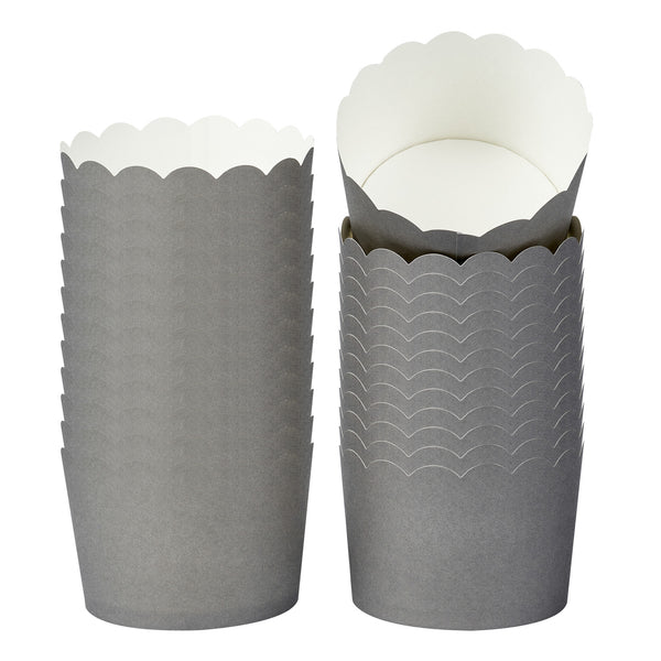 10 OZ ROUND GRAY PAPER JUMBO BAKING CUP - SCALLOPED