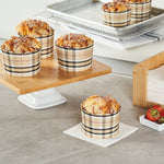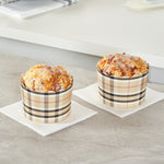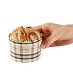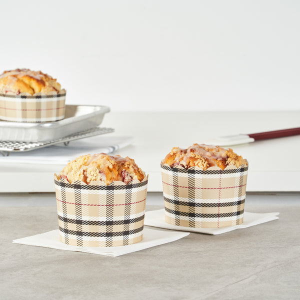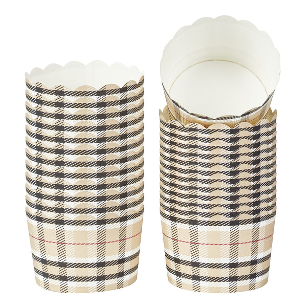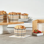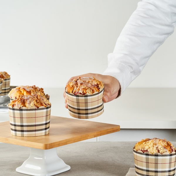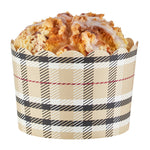 Elevate your bakery's dessert presentation with ease. The Panificio Greaseproof Jumbo Baking Cups feature a greaseproof lining that ensures easy release of your baked goods, making them perfect for busy bakeries and cafes. With their distinctive scalloped edges, these jumbo baking cups add an elegant flair to any confection, enhancing customer appeal. Their 10-ounce capacity is ideal for serving large muffins or cupcakes, accommodating generous portions that delight customers. Measuring 3.5 inches in diameter and 2.5 inches in height, these brown plaid greaseproof baking cups fit seamlessly into any culinary setting. Oven-ready, they allow for the convenient baking of treats directly in the cup, streamlining your cooking process. Choose these large cupcake liners to enhance your foodservice offerings with style and sustainability. Each order includes 200 Panificio Greaseproof Jumbo Baking Cups.