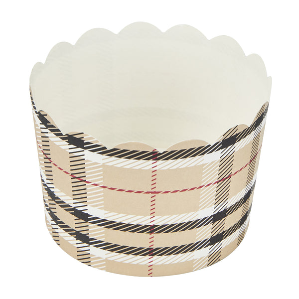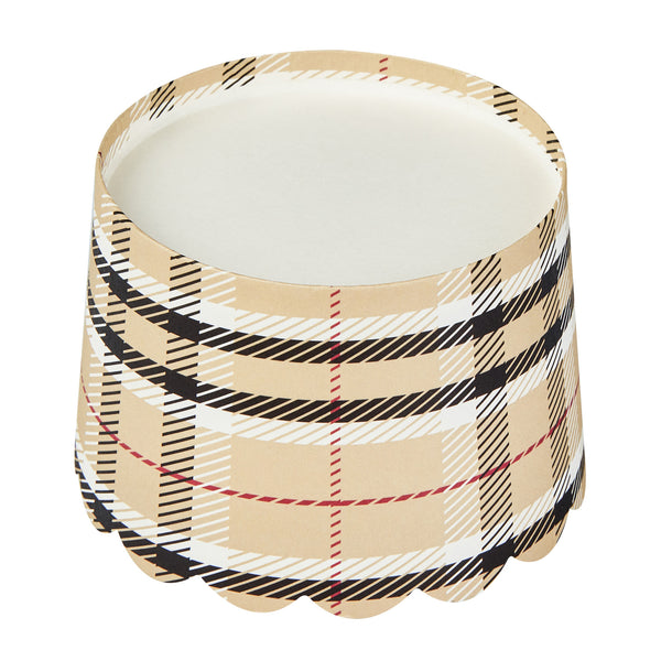 10 OZ ROUND PLAID PAPER JUMBO BAKING CUP - SCALLOPED