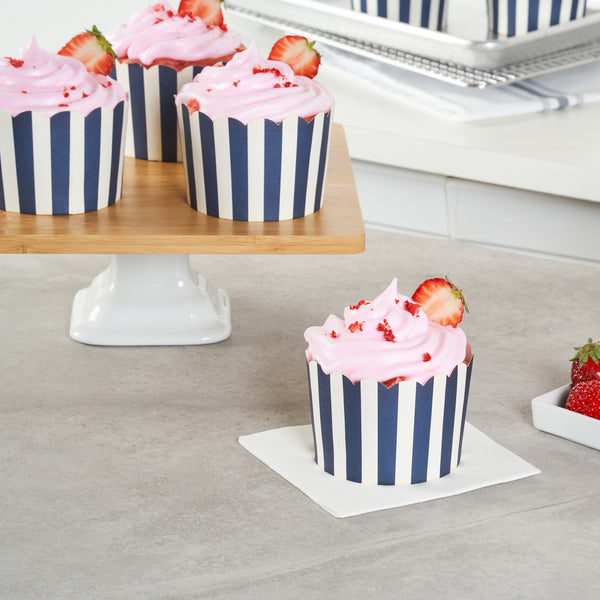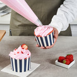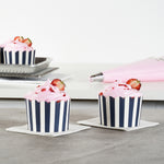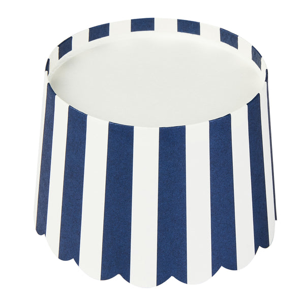 10 OZ ROUND STRIPE BLUE PAPER JUMBO BAKING CUP - SCALLOPED