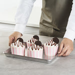 10 OZ ROUND STRIPE PINK PAPER JUMBO BAKING CUP - SCALLOPED