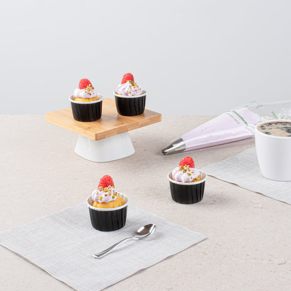 - Pleated design accentuates cookies, cupcakes, and pastries