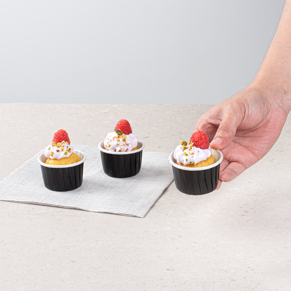 2 OZ ROUND BLACK PAPER MEDIUM BAKING CUP - PLEATED