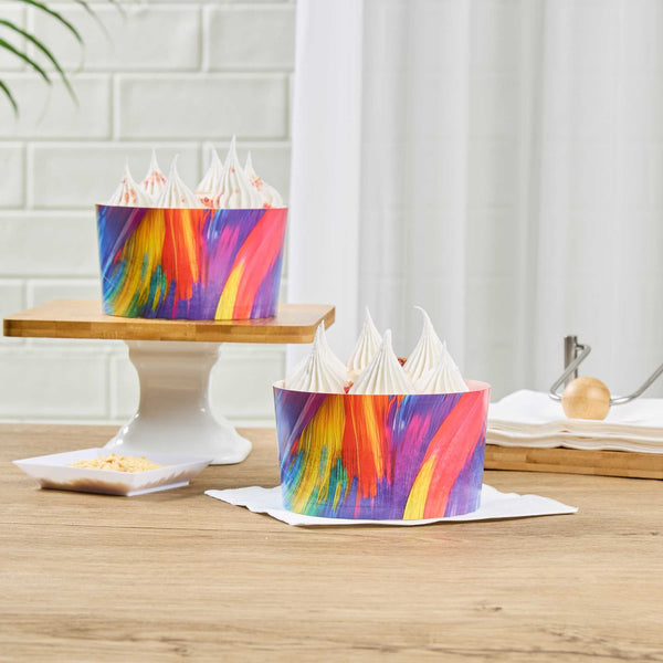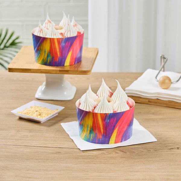 22 OZ PAPER BAKING RING MOLD - COLORFUL ABSTRACT WAVES, GREASEPROOF