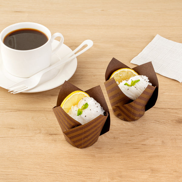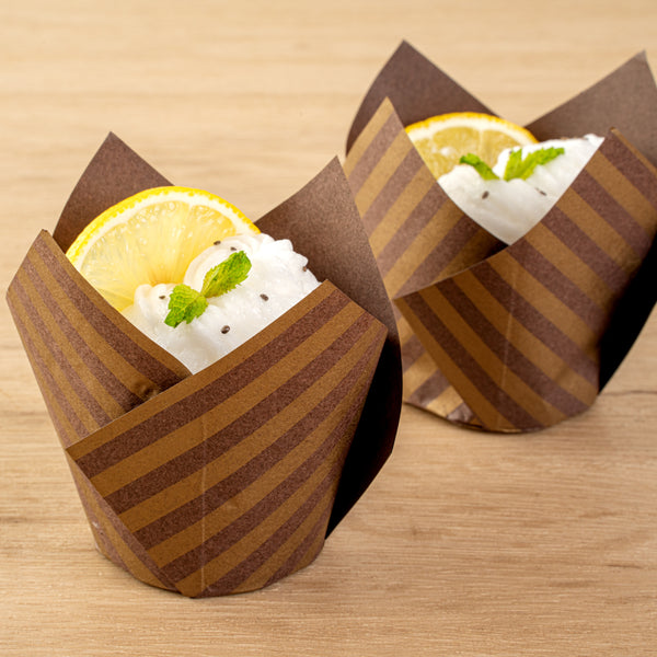 3.5 OZ BROWN PAPER STRIPED TULIP BAKING CUP - GREASEPROOF