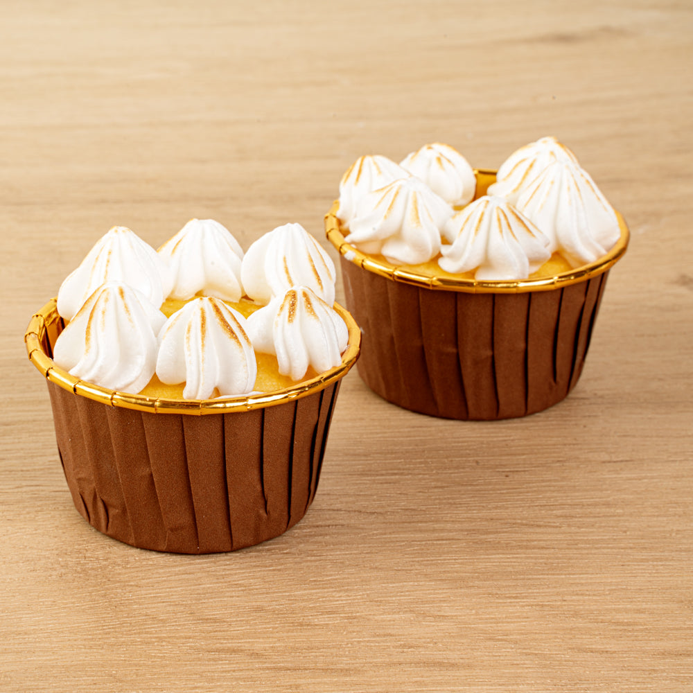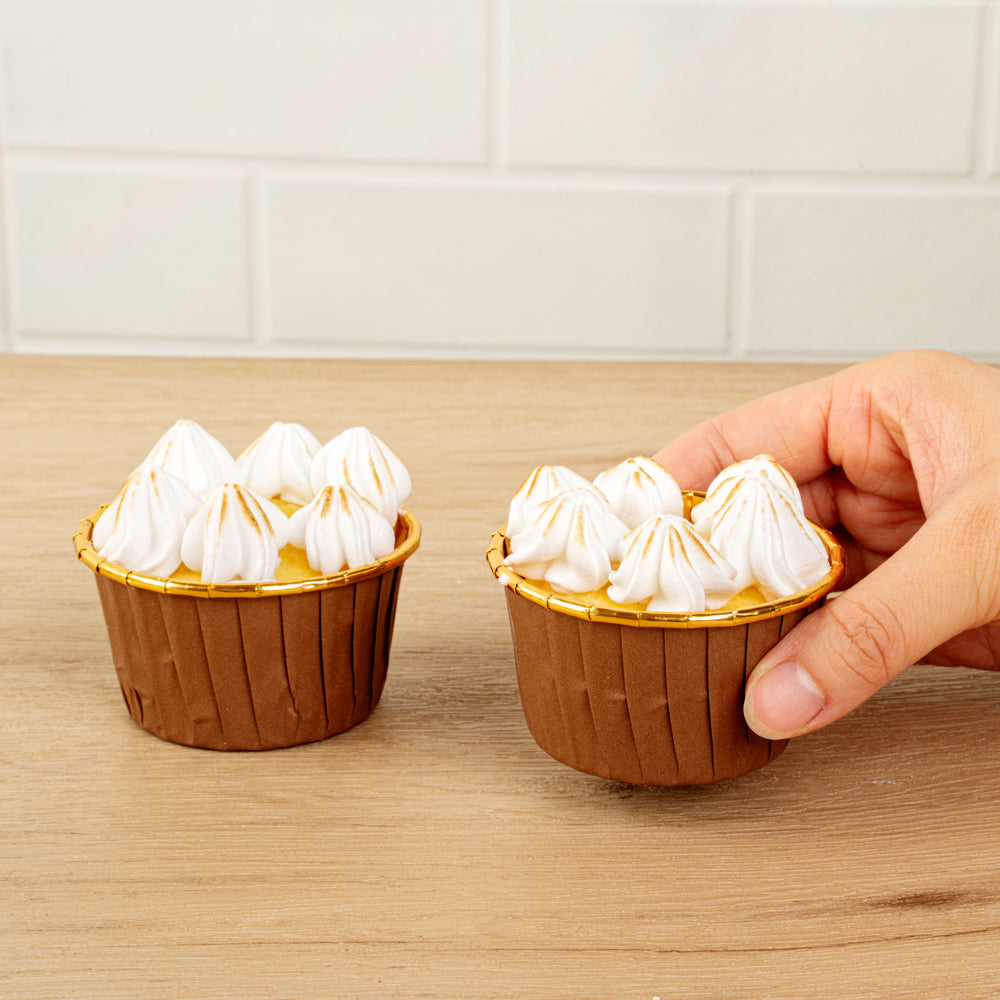 Achieve perfectly baked pastries with Panificio Foil-Lined Foil Baking Cups. These foil baking cups feature a durable foil-lined paper that evenly distributes heat, ensuring your cupcakes, muffins, and pastries bake uniformly every time. Their greaseproof lining keeps your creations looking immaculate, while the elegant brown color adds a sophisticated touch, perfect for bakeries and catered events looking for stylish disposable cupcake cups. With a dimension of 2.7 inches in length, width, and a height of 1.6 inches, these cups are designed to be oven-safe, microwavable, making them ideal for busy foodservice settings. Compatible lids are available to facilitate easy transport and preserve freshness, a crucial benefit for cafes offering to-go orders and needing greaseproof muffin cups. Enhance your bakery's presentation and operational efficiency by incorporating these into your service. Each order includes 50 Panificio Foil-Lined Foil Baking Cups.