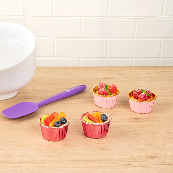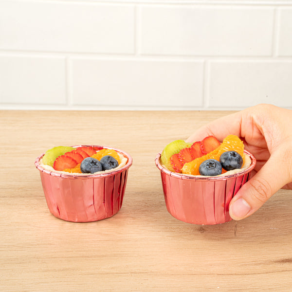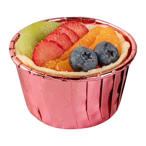 Prevent messy muffin mishaps with our Panificio Foil Muffin Liners. These greaseproof cupcake liners boast a greaseproof coating that ensures easy removal, allowing your treats to effortlessly slide out without sticking. Crafted from heavy-duty foil paper, these aluminum cupcake holders maintain their shape, ensuring optimal performance in both microwaves and ovens. The elegant pleated design not only enhances the visual appeal of your desserts but also provides a sturdy base, beautifully showcasing each creation. With a compact 2.7 inches by 2.7 inches size and a convenient 1.6 inches height, these liners are ideal for small to medium-sized confections. Their rose gold hue adds a touch of sophistication, making them perfect for upscale events and everyday use alike. Elevate your baking presentation and streamline kitchen operations by incorporating these reliable foil muffin liners into your service. Each order includes 50 Panificio Foil Muffin Liners.