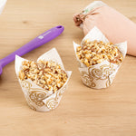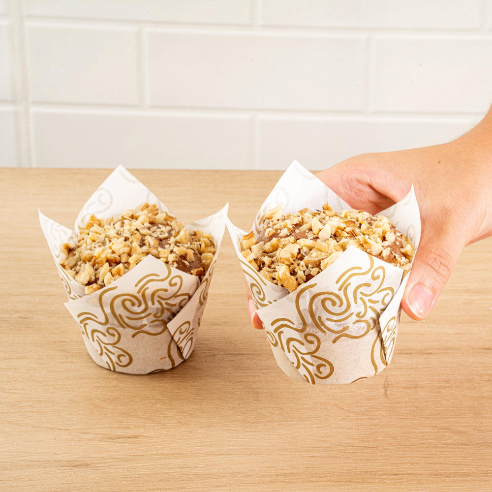 Display your culinary creations with confidence. Panificio Greaseproof Tulip Baking Cups feature a greaseproof coating that ensures easy dessert removal, making them ideal for busy bakeries that rely on efficient operations. These tulip baking cups are crafted from heavy-duty paper, which maintains its shape during baking, allowing your treats to look as perfect as they taste. The elegant tulip design elevates dessert presentation, providing an eye-catching display that enhances customer satisfaction. With dimensions of 3.35 inches and capacity of 3.5 ounce, these cupcake liners are designed to fit standard-sized muffins and cupcakes, ensuring versatility in your kitchen. Made from oven-safe paper, these greaseproof muffin wrappers are not only functional but also environmentally friendly, appealing to eco-conscious consumers. Elevate your dessert offerings and streamline your baking process with these reliable baking essentials. Sold in a 50 count box.