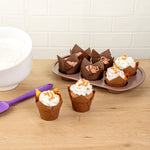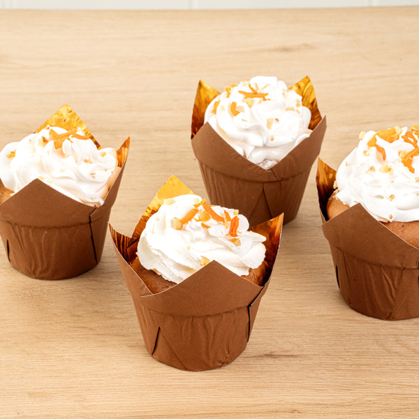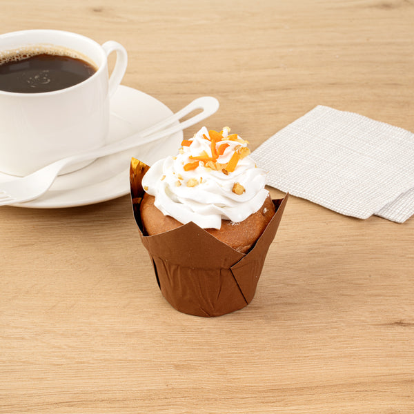 Ensure flawless presentations with Panificio Brown Tulip Cupcake Liners. These tulip cupcake liners feature a greaseproof coating that ensures easy removal and quick cleanup, allowing your kitchen staff to maintain efficiency and focus on creativity. Designed to beautifully showcase pastries and cupcakes, their tulip shape enhances the visual appeal of your baked goods, making them ideal baking cups for weddings or upscale events. Constructed from heavy-duty foil paper, these liners hold their shape in the oven, ensuring consistent baking results and maintaining a height of 2.75 inches. Elevate the presentation and performance of your desserts with these greaseproof muffin wrappers that combine functionality with elegance. Each order includes 500 Panificio Brown Tulip Cupcake Liners.