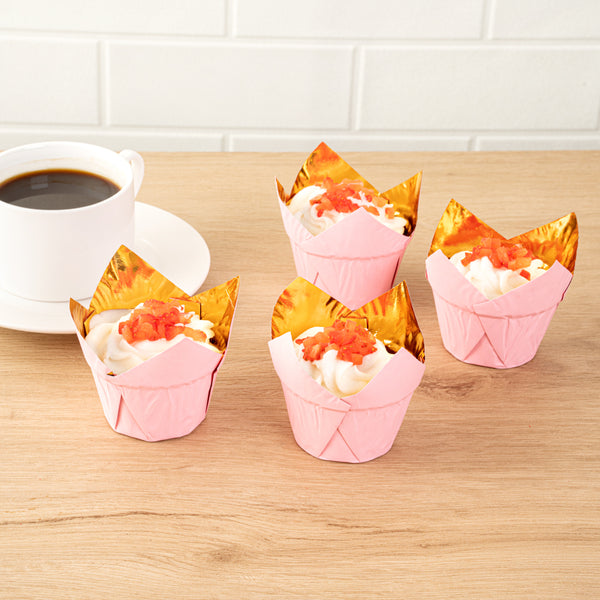 3.9 OZ PINK FOIL PAPER TULIP BAKING CUP