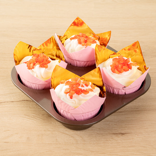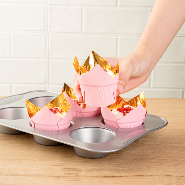 Enhance your dessert presentation with easy removal. The Panificio Pink Tulip Cupcake Liners feature a greaseproof coating that ensures hassle-free removal of treats, perfect for busy bakeries using tulip cupcake liners. Their elegant tulip design beautifully showcases your cupcakes and muffins, elevating the dining experience and capturing customer attention. Constructed from heavy-duty foil paper, these liners maintain their shape during baking, ensuring consistent results and making them ideal for operations utilizing foil baking liners. With dimensions of 3.35 inches in length and width and 2.75 inches in height, these disposable cupcake liners fit a variety of dessert creations. Additionally, they are BPA-free, oven safe, and recyclable, aligning with sustainable baking practices. Upgrade your pastry presentation and efficiency today with these versatile baking essentials. Each order includes 500 Panificio Pink Tulip Cupcake Liners.