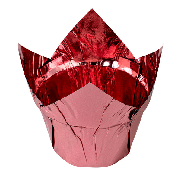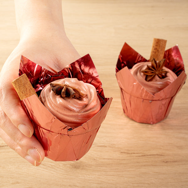Ensure your cupcakes shine with Panificio Greaseproof Rose Gold Tulip Cupcake Liners. These tulip cupcake liners feature a greaseproof coating that prevents sticking, making dessert removal effortless for quick and efficient service. Their elegant tulip design beautifully showcases your treats, enhancing presentation and captivating customers' attention. Made from heavy-duty foil paper, these liners maintain their shape in ovens up to 2.75 inches high, ensuring optimal baking performance and reliable results every time. As microwavable foil baking cups, they contribute to sustainable practices while offering versatility in foodservice operations. With their striking rose gold finish, these cupcake wrappers add a touch of sophistication, elevating the appearance of any dessert display. Choose these liners to impress your clientele and maximize your kitchen's efficiency. Each order includes 50 Panificio Greaseproof Rose Gold Tulip Cupcake Liners.