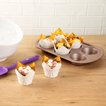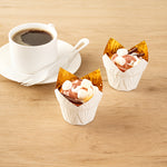 Ensure flawless dessert presentations with greaseproof tulip cupcake liners. Panificio Greaseproof Tulip Cupcake Liners feature a greaseproof coating that guarantees easy removal and a clean presentation, making them an essential addition to any bakery's arsenal. Designed with a tulip shape, these liners beautifully enhance dessert aesthetics, creating elegant displays that captivate customers and boost sales. Constructed from heavy-duty foil paper, these liners maintain their shape during baking, ensuring consistent results with every batch. With dimensions of 3.35 inches in length and width, and 2.75 inches in height, these liners provide a generous capacity of 3.9 ounces, ideal for showcasing your most delectable treats. Elevate your dessert offerings with these versatile foil cupcake wrappers. Each order includes 500 Panificio Greaseproof Tulip Cupcake Liners.