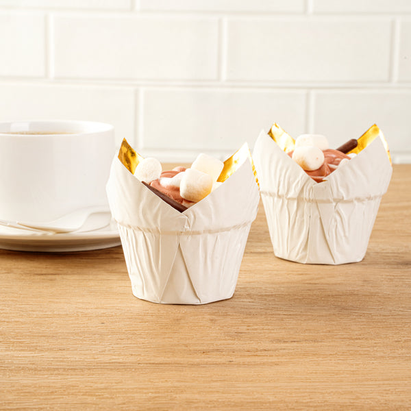 3.9 OZ WHITE FOIL PAPER TULIP BAKING CUP