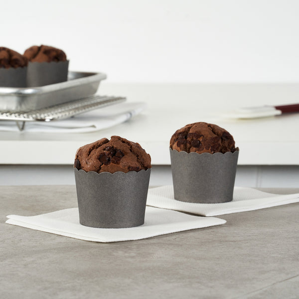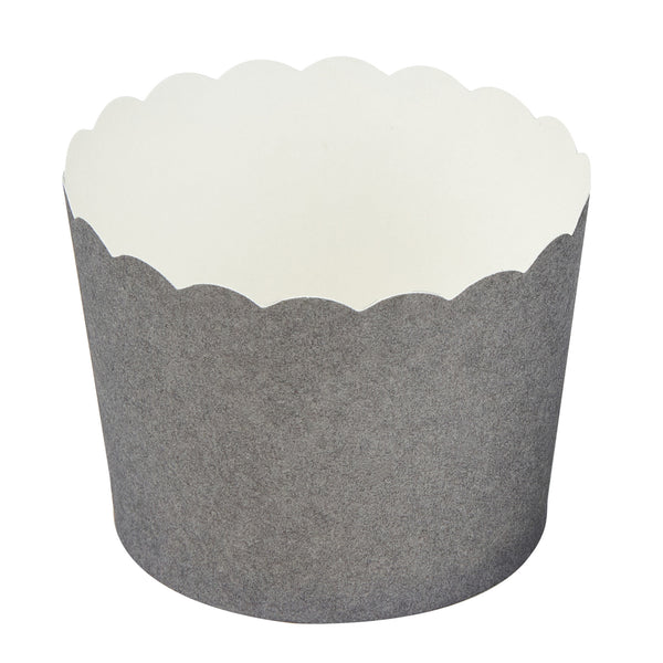 3 OZ ROUND GRAY PAPER MINI BAKING CUP - SCALLOPED