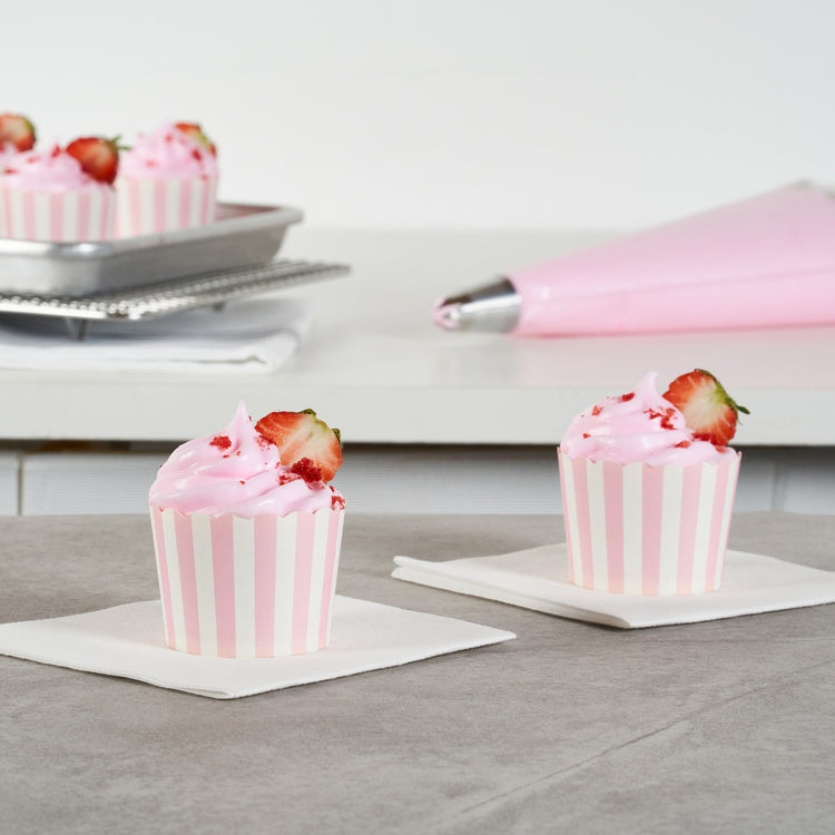 3 OZ ROUND STRIPE PINK PAPER MINI BAKING CUP - SCALLOPED