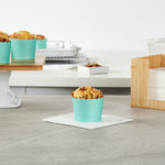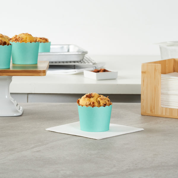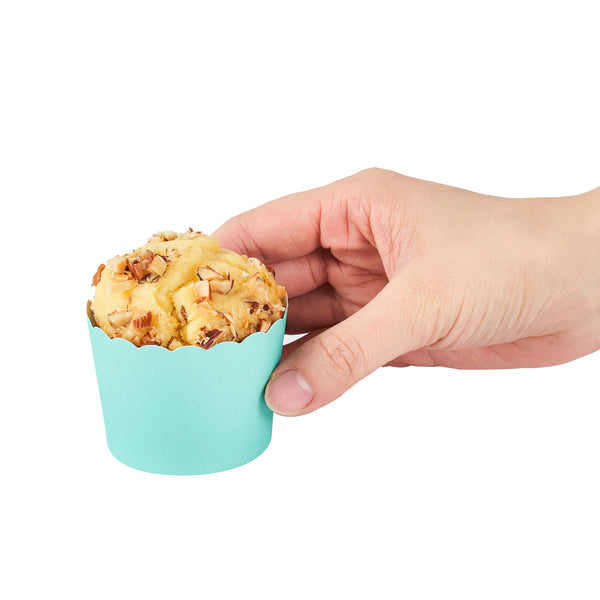 Enhance the presentation of your baked creations effortlessly. Panificio Greaseproof Turquoise Paper Cupcake Liners feature a greaseproof lining that ensures easy release for pastries, providing seamless service with every batch of cupcakes. The scalloped edges of these mini baking cups add flair to your baked goods, making them visually appealing for customers and perfectly suited for bakery and cafe displays. Their 3.38-ounce capacity is ideal for standard-sized cupcakes, and their 2.38 inches in diameter accommodates various dessert servings. Oven-safe construction allows for direct baking, eliminating the need for separate pans and streamlining the baking process, which is essential for busy foodservice operations. Make your dessert presentations pop while reducing cleanup time with these greaseproof baking cups. Each order includes 200 Panificio Greaseproof Turquoise Paper Cupcake Liners.