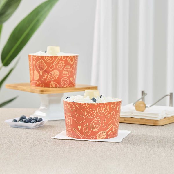 Simplify your baking process with our versatile bundt cake paper mold. The Panificio Greaseproof Bundt Cake Paper Mold, measuring 4.9 inches in length and width with a height of 3.8 inches, is expertly crafted from brown paper to ensure durability and a reliable baking experience. This paper baking pan is equipped with a greaseproof lining that guarantees a clean release of your bundt cakes, minimizing mess and enhancing presentation. Its oven-safe design facilitates convenient hot food preparation, allowing you to bake with confidence. Plus, the freezer-safe capability of this disposable baking mold offers extended storage options, making it an ideal choice for preparation. Designed for easy disposal, it supports efficient kitchen operations without compromising on quality. Elevate your baking with these practical and efficient cake molds. Each order includes 100 Panificio Greaseproof Bundt Cake Paper Molds.