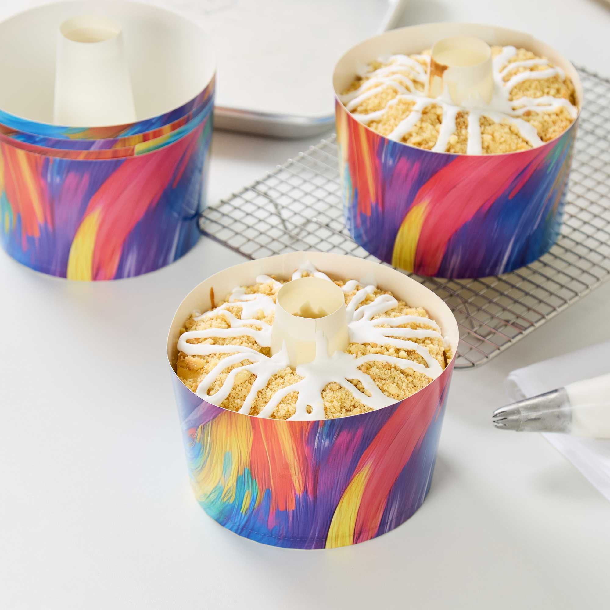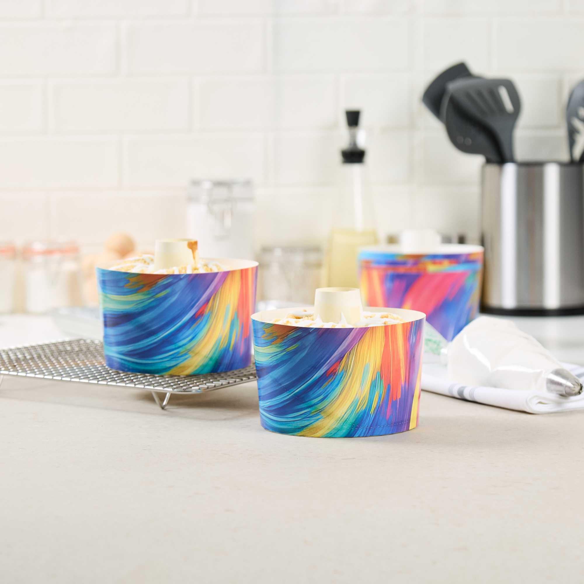 38 OZ PAPER BAKING RING MOLD - COLORFUL ABSTRACT WAVES, GREASEPROOF