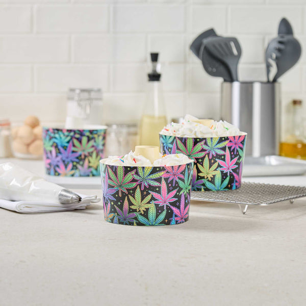 38 OZ PAPER BAKING RING MOLD - TRIPPY LEAF PRINT, GREASEPROOF