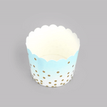 4.5 OZ BLUE PAPER SCALLOPED BAKING CUP - GOLD POLKA DOTS
