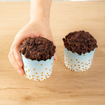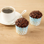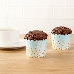 4.5 OZ BLUE PAPER SCALLOPED BAKING CUP - GOLD POLKA DOTS