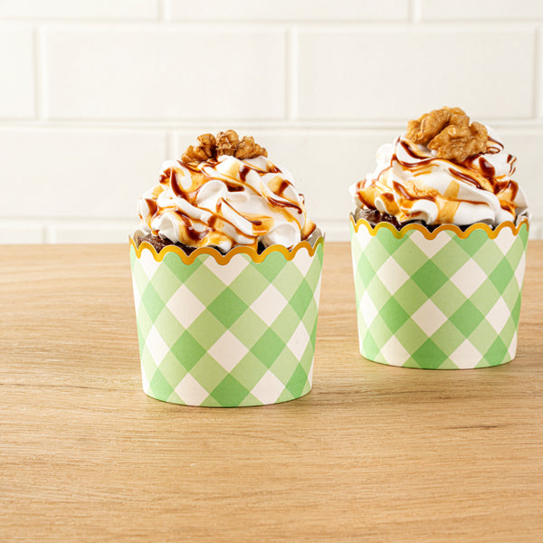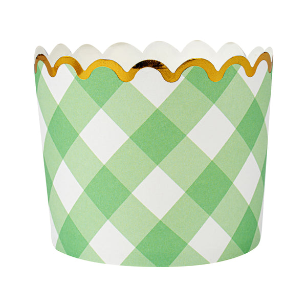 4.5 OZ GREEN PLAID PAPER SCALLOPED BAKING CUP - GOLD RIM