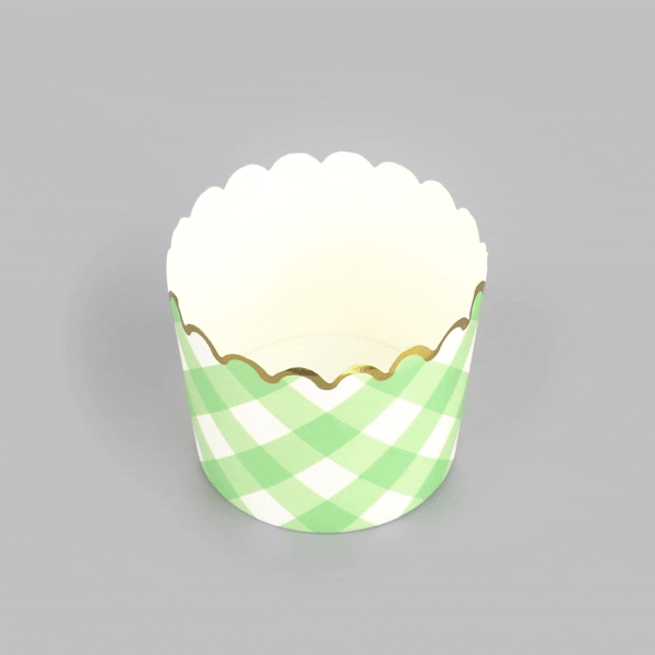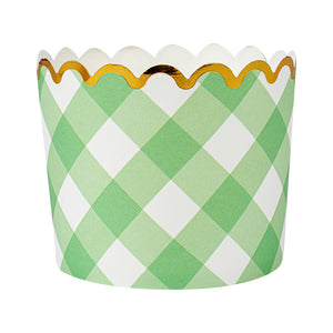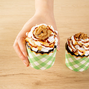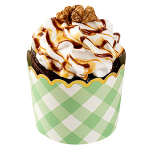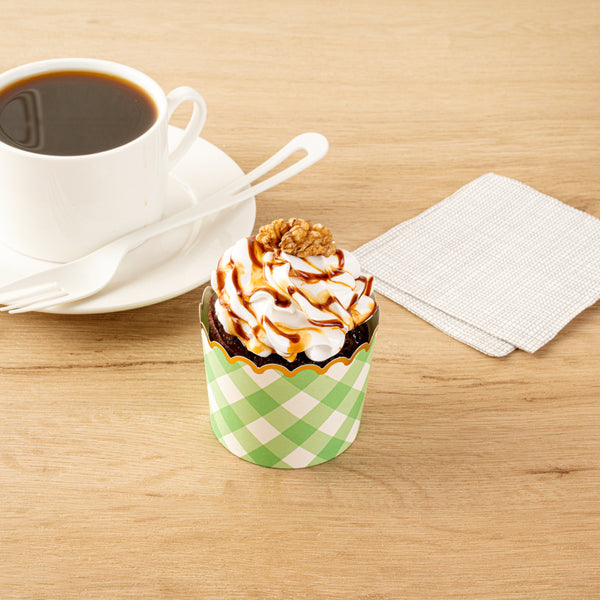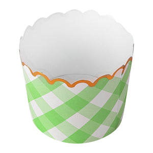 4.5 OZ GREEN PLAID PAPER SCALLOPED BAKING CUP - GOLD RIM