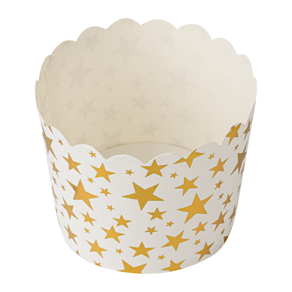 4.5 OZ WHITE PAPER SCALLOPED BAKING CUP - GOLD STARS
