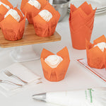 4 OZ ORANGE PAPER TULIP BAKING CUP - GREASEPROOF