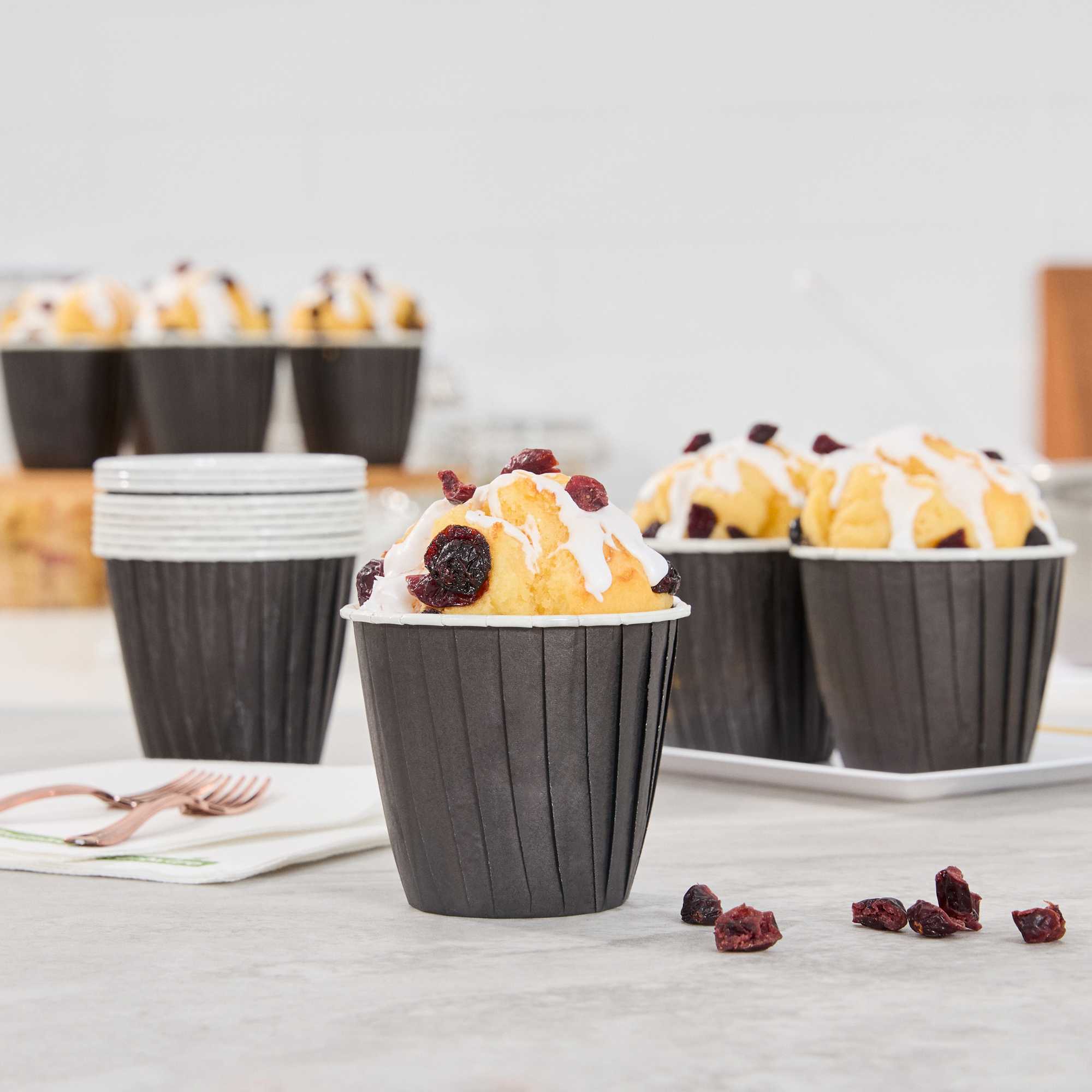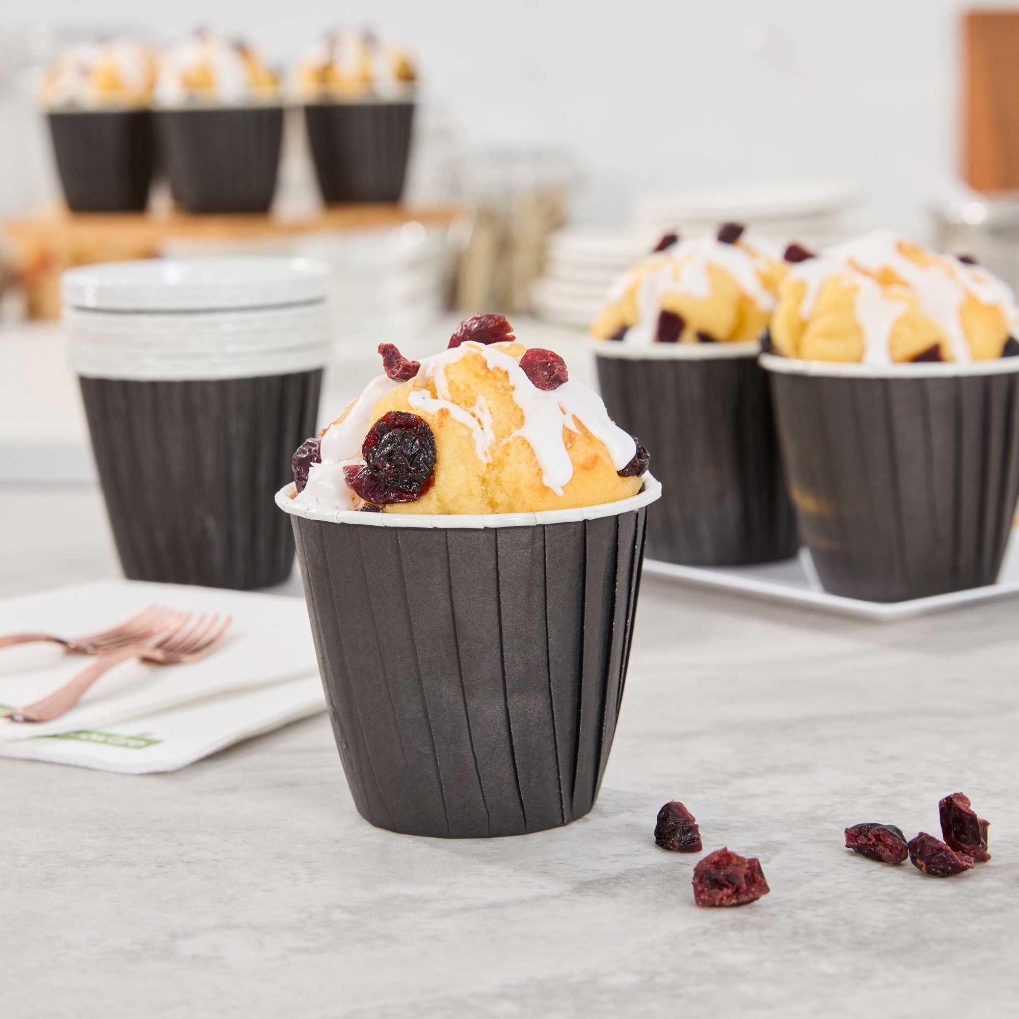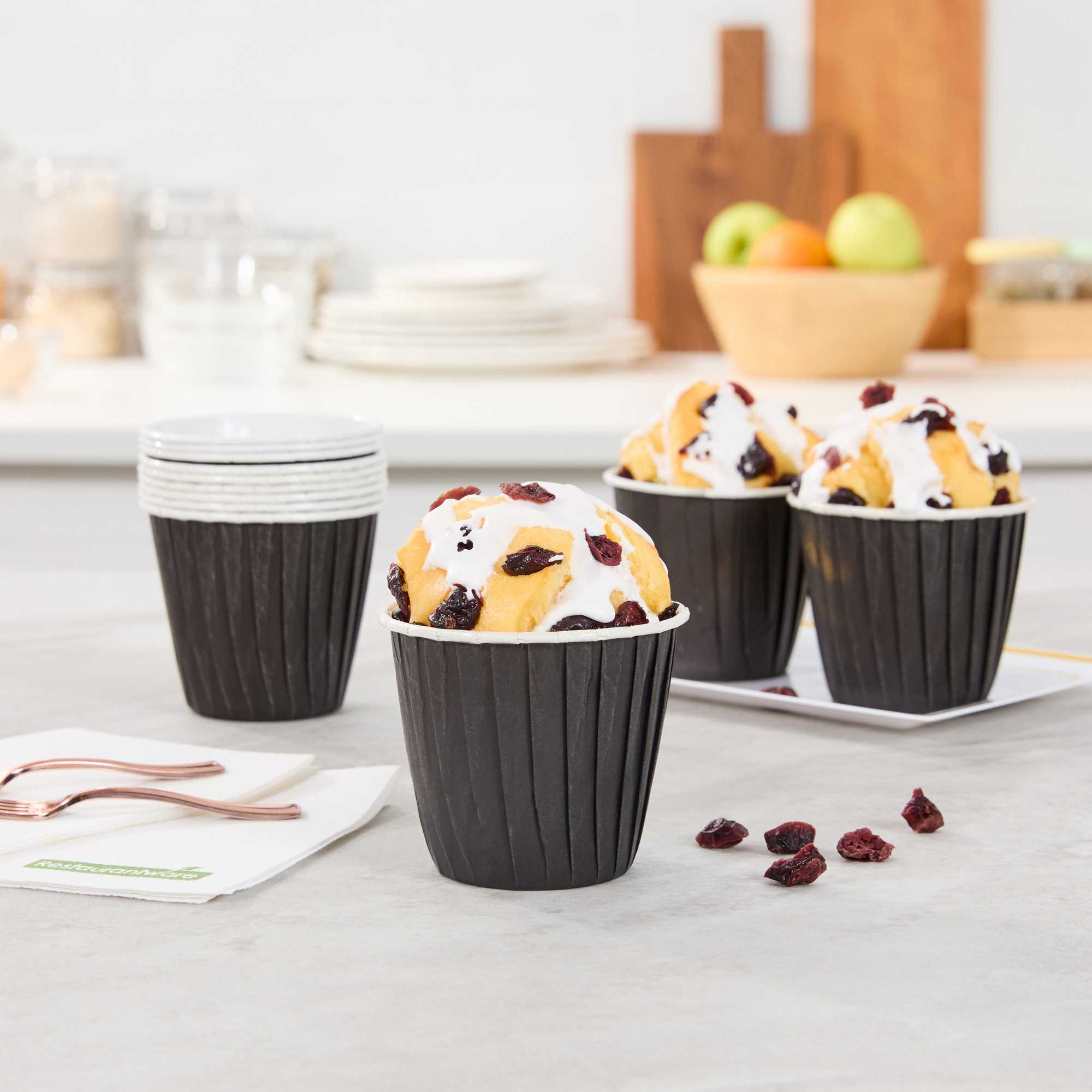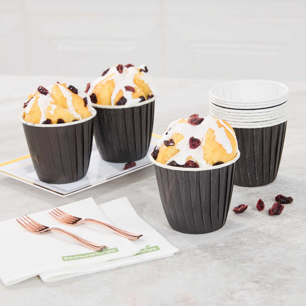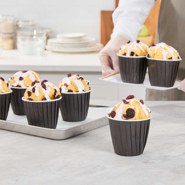 4 OZ ROUND BLACK PAPER TALL BAKING CUP - PLEATED