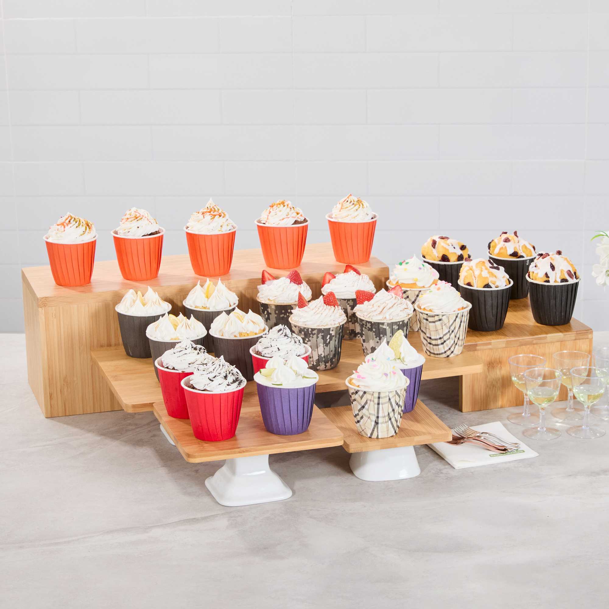 - Pleated design accentuates cookies, cupcakes, and pastries
