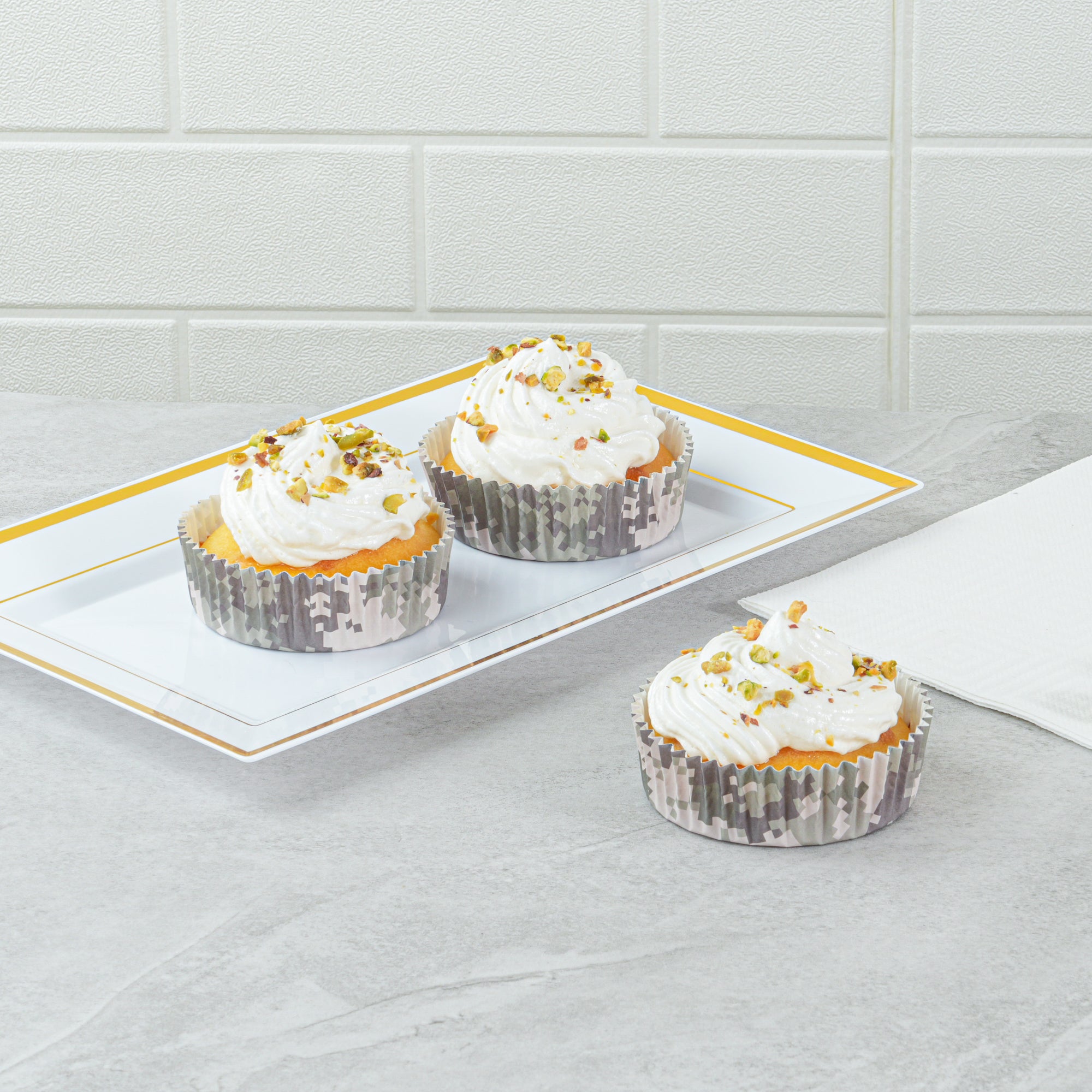Prevent messy baking with grease-resistant cupcake liners. Panificio Grease-Resistant Cupcake Liners feature a grease-resistant coating that ensures an easy release of your treats, making them the perfect cupcake liner for busy bakeries and catering services. Crafted from heavyweight paper, these paper baking cups can withstand oven temperatures up to 425 degrees Fahrenheit, allowing you to bake with confidence and efficiency. The ridged design of these disposable muffin cups accentuates the presentation of cookies and pastries, enhancing the visual appeal of your creations. Measuring 3.5 inches by 3.5 inches with a height of 1 inch, these liners are perfect for standard-sized desserts. Made from high-quality paper, these liners are disposable, saving you time on cleanup and reducing waste. Elevate your baking with these reliable liners, ideal for high-volume foodservice operations. Sold in a 200 count box.