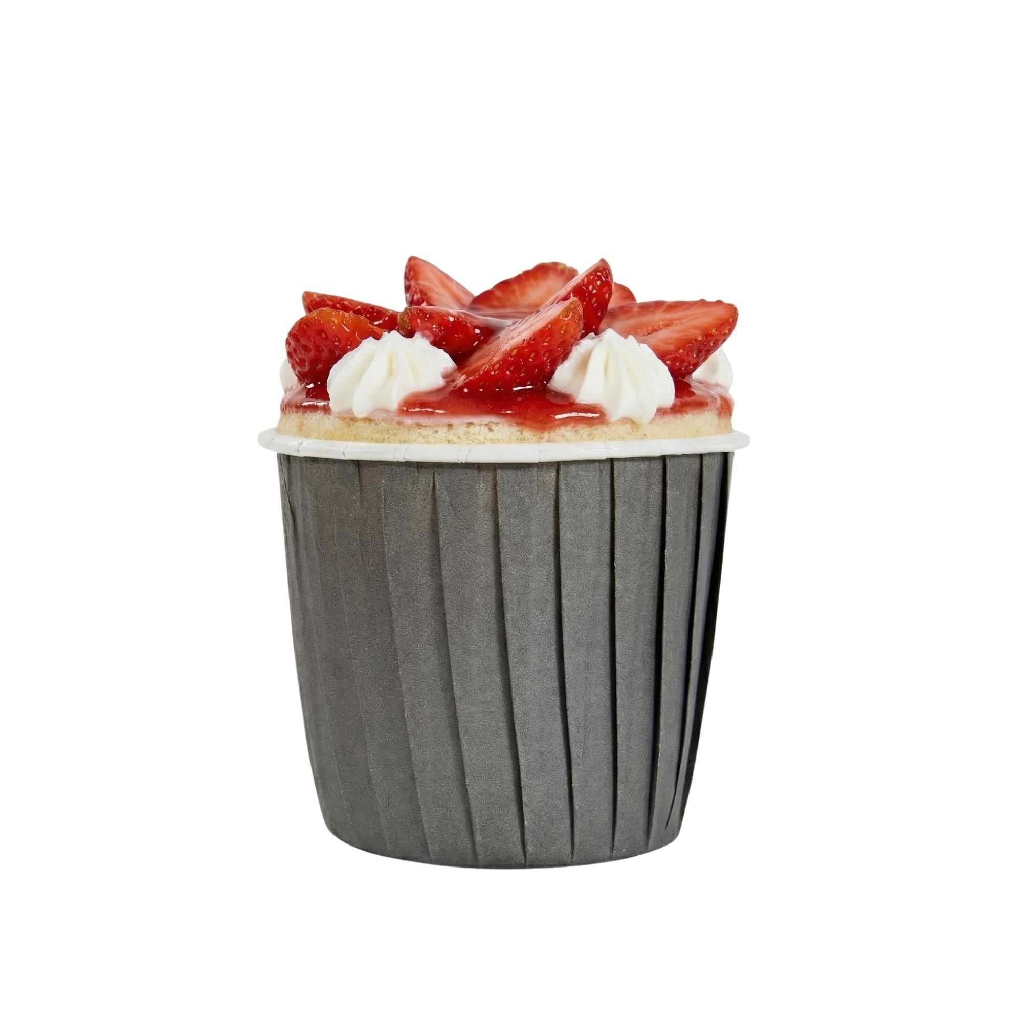 Enhance your baking presentation with effortless style and functionality. The Panificio Grease-Resistant Cupcake Liner's gray paper construction is equipped with a grease-resistant coating, ensuring your treats easily release without sticking. Perfect for showcasing your confections, this cupcake liner features a pleated design that beautifully accentuates the appearance of baked goods, making it a must-have for any bakery or café. With the ability to endure oven temperatures up to 425 degrees Fahrenheit, these liners are not only oven-safe but also freezer-safe and disposable, offering versatility and convenience for busy kitchens. Measuring 2.75 inches in height, each muffin cup holds up to 3.5 ounces, providing ample space for your creations. Choose these paper baking cups to maintain product integrity and enhance kitchen efficiency. Each order includes 200 Panificio Grease-Resistant Cupcake Liners.