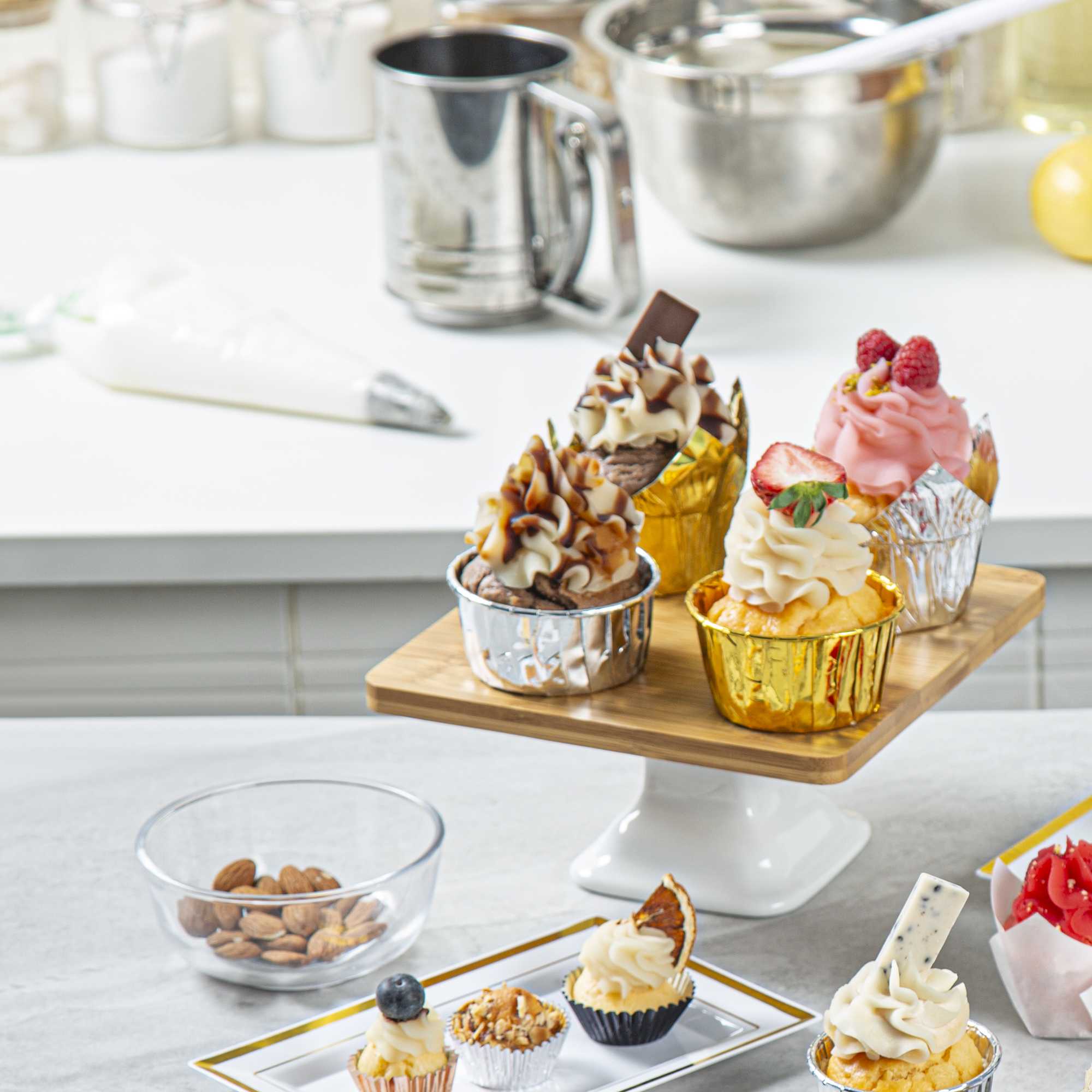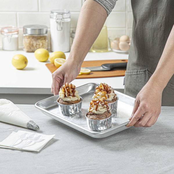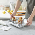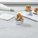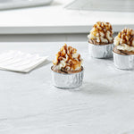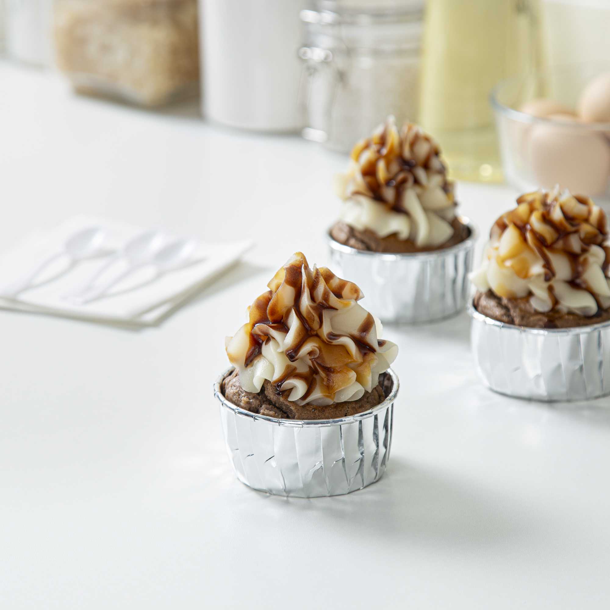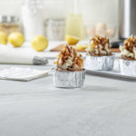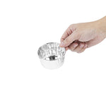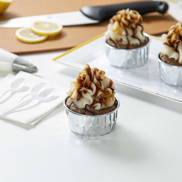 Serve miniature appetizers and bite-sized hors d'oeuvres with our Panificio 5.5-ounce Round Metallic Silver Paper Large Baking Cups. The pleated construction of these baking cups gives extra strength to the walls of these paper cupcake holders. Equipped with a reinforced rolled rim, these silver baking cups are designed to expertly hold their shape against hot or cold temperatures up to 425F. With their grease-resistant construction, these cupcake liners prevent unsightly grease splotches. The metallic-coated silver finish of these cupcake baking cups brings a touch of luxury to your baked goods and tasty treats. For easier cleaning, these baking liners are conveniently disposable. Measuring 3 inches in diameter by 1.25 inches in height, these baking liners contain up to 5.5 ounces, making them ideal for baking cupcakes, muffins, and puddings. Shipped in a 200 count box.