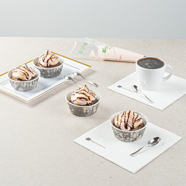 Ensure flawless presentation with Panificio Grease-Resistant Muffin Liners. These muffin liners boast a grease-resistant coating that ensures your baked goods release effortlessly, saving you time and minimizing waste in busy kitchens. Constructed from heavyweight paper, these liners withstand oven temperatures up to 425 degrees Fahrenheit, providing reliable performance for professional baking environments. Their pleated design enhances the appearance of muffins and cupcakes, offering a visually appealing display that entices customers. With a 3.65-inch length and width, these liners are perfect for creating large baking cups that handle a variety of treats. Made from paper, these liners are disposable, making cleanup a breeze while maintaining a sustainable footprint. Elevate your dessert presentation with these versatile cupcake wrappers that are also freezer-safe, extending their utility in foodservice operations. Sold in a 200 count box.