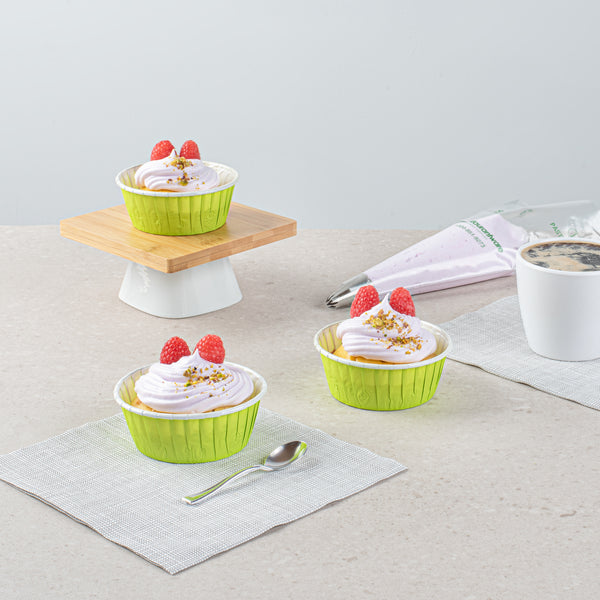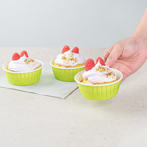 5 OZ ROUND ECO GREEN PAPER LARGE BAKING CUP - PLEATED
