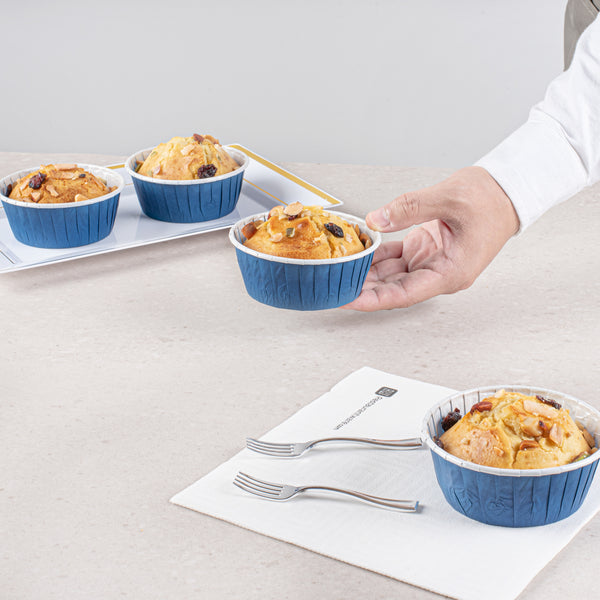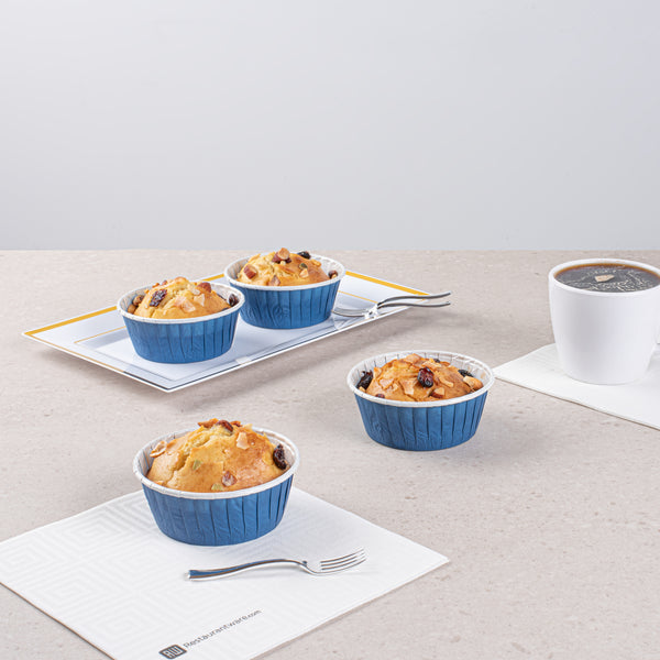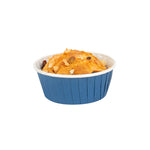 Ensure flawless presentation with these grease-resistant muffin cups. The Panificio Blue Paper Muffin Cup showcases a grease-resistant coating that guarantees your baked treats release effortlessly, maintaining their perfect shape and presentation. Designed with heavy-duty paper, these muffin cups withstand temperatures up to 425 degrees Fahrenheit, making them ideal for high-temperature baking environments. The pleated design not only adds an elegant touch but also enhances the visual appeal of your cupcakes and muffins, attracting more customers to your bakery. Each muffin cup measures 3.65 inches in length, providing ample space for your delicious creations. These cupcake liners are crafted from sturdy paper, ensuring reliable performance in bustling kitchens. Elevate your baked goods with our grease-resistant baking cups, ensuring your treats remain picture-perfect from oven to table. Sold in a 200 count box.