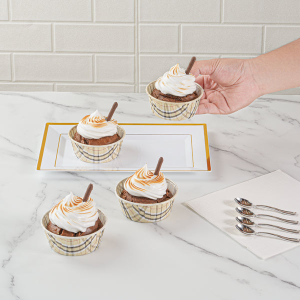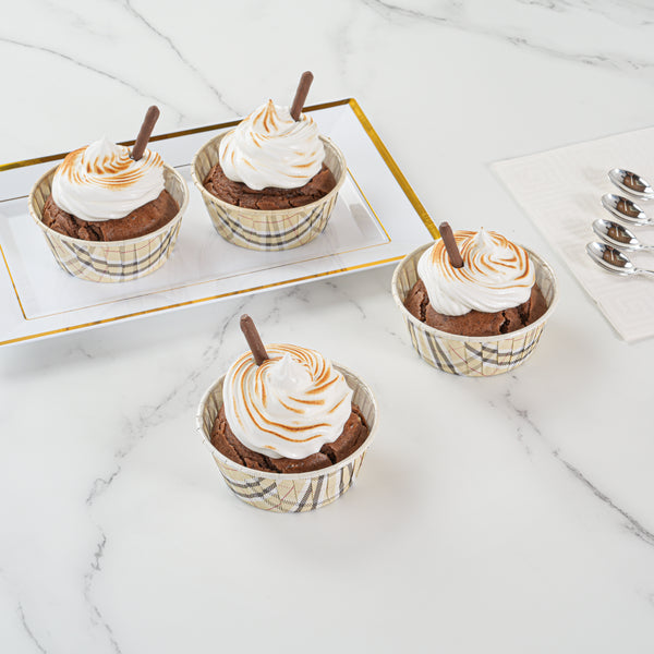 Ensure flawless presentation with Panificio Grease-Resistant Cupcake Liners. These plaid cupcake liners feature a grease-resistant coating that guarantees easy release of your delicious treats, making them indispensable for busy bakeries and catering services. Designed from heavyweight paper, these muffin cups can withstand oven temperatures up to 425 degrees Fahrenheit, allowing you to bake with confidence knowing your creations will maintain their integrity. The elegant pleated design of these paper baking cups beautifully accentuates your cupcakes and other baked delights, adding a touch of sophistication to your dessert displays. With dimensions of 3.65 inches in length and width and 1.57 inches in height, these liners offer a sturdy and reliable solution for your baking needs. Enhance your foodservice operations with these disposable, oven-safe, and freezer-safe baking essentials. Sold in a 200 count box.