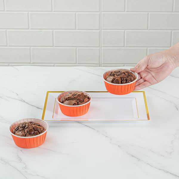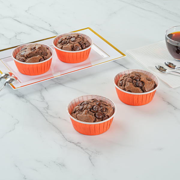 Enhance your baking presentation with the Panificio Grease-Resistant Disposable Cupcake Liner. Featuring a grease-resistant coating, these disposable cupcake liners ensure easy release and maintain the pristine look of your delicacies, optimizing your kitchen's workflow and minimizing waste. The pleated design of these grease-resistant muffin liners beautifully accentuates and elevates the presentation of your treats, making them ideal for showcasing at events or bakeries. Crafted from heavyweight paper, these oven-safe baking cups withstand high temperatures up to 425 degrees Fahrenheit, making them perfect for a variety of baking applications. Measuring 3.65 inches in length and 1.57 inches in height, these liners provide ample space for your creations, while their vibrant tangerine color adds a pop of fun to your baked goods. Ensure your baking efforts are both efficient and visually appealing with these reliable cupcake liners. Sold in a 200 count box.